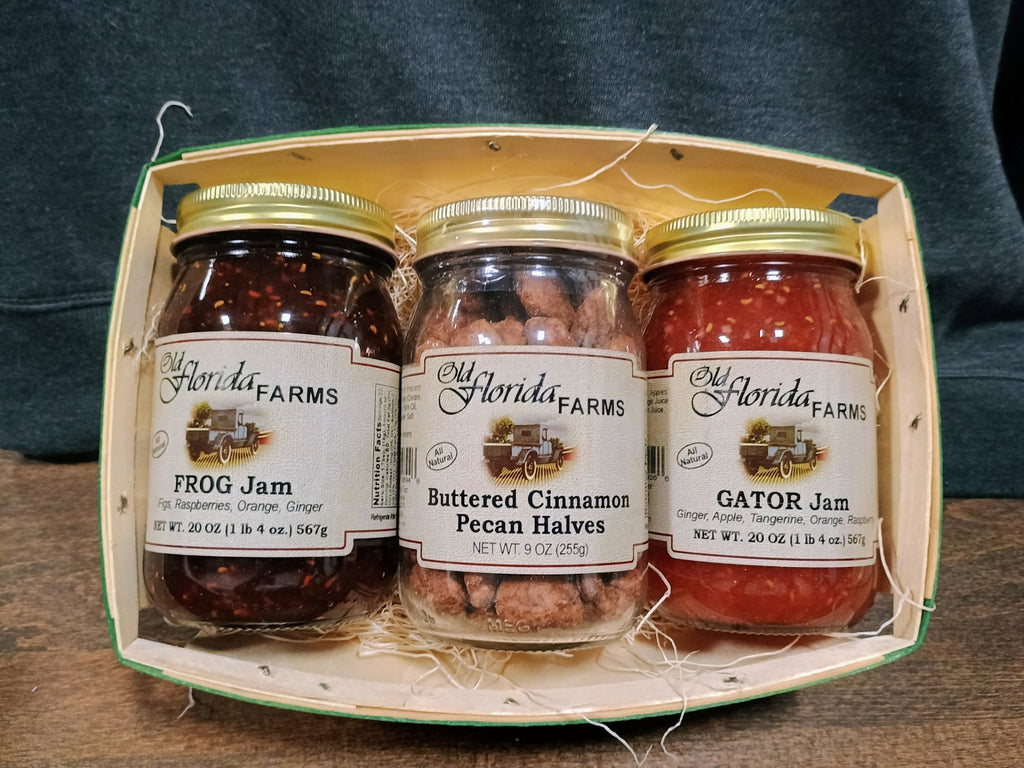 Contains 1 F.R.O.G Jam, 1 G.A.T.O.R Jam, Buttered Cinnamon Pecan Halves
