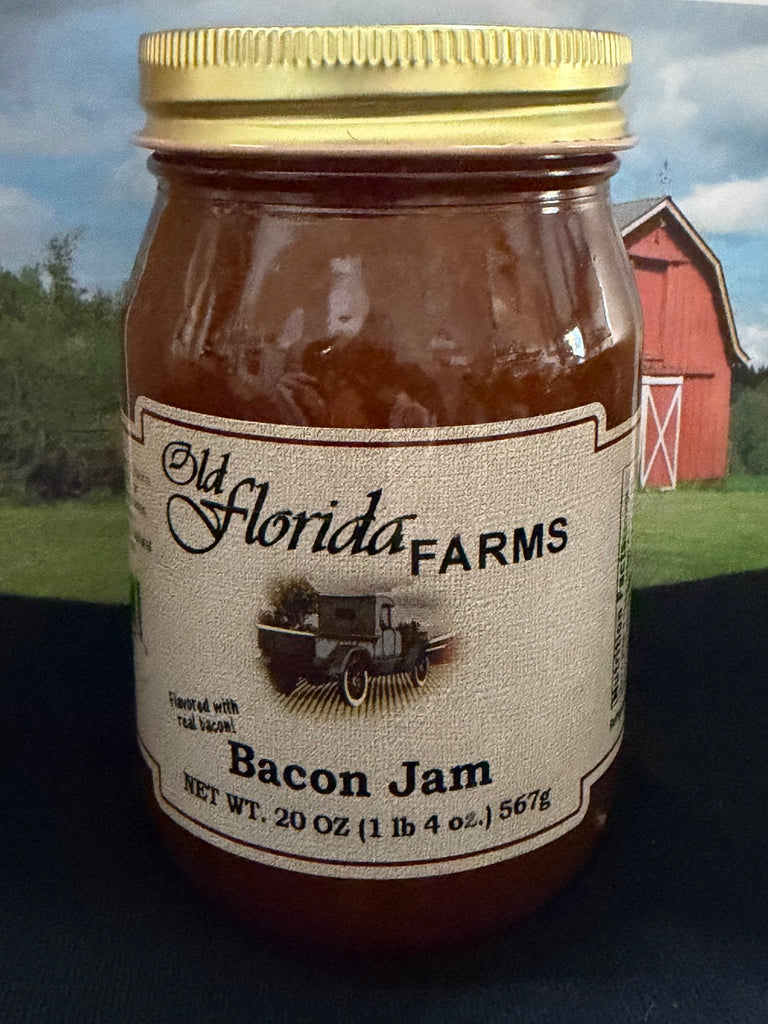 Ingredients: sugar, apples, onions, bacon (Bacon contains 2% or less of; salt, sodium: sodium erythorbate, sodium nitrate, smoke flavoring) natural flavoring jalapeños, pectin, citric acid.